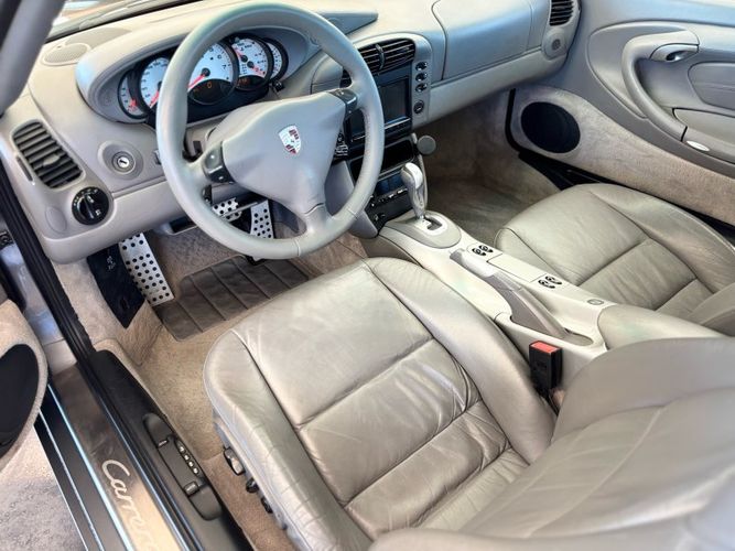 Experience the thrill of open-air driving with this stunning 2001 Porsche 911 Carrera Convertible. Boasting a clean CARFAX report, this timeless classic offers peace of mind alongside its exhilarating performance. Under the hood lies a powerful 6-cylinder engine delivering an impressive 300 horsepower and 258 ft-lbs of torque, ensuring every drive is as exciting as it is smooth. The sleek design and iconic silhouette make it an eye-catching addition to any collection or a perfect entry into the world of luxury sports cars.