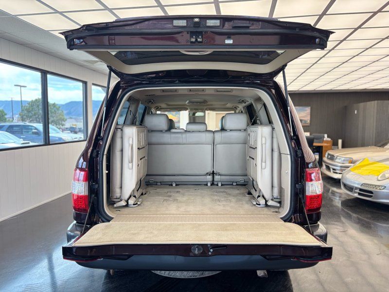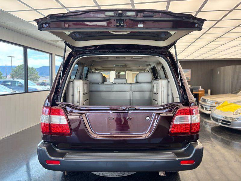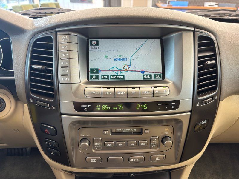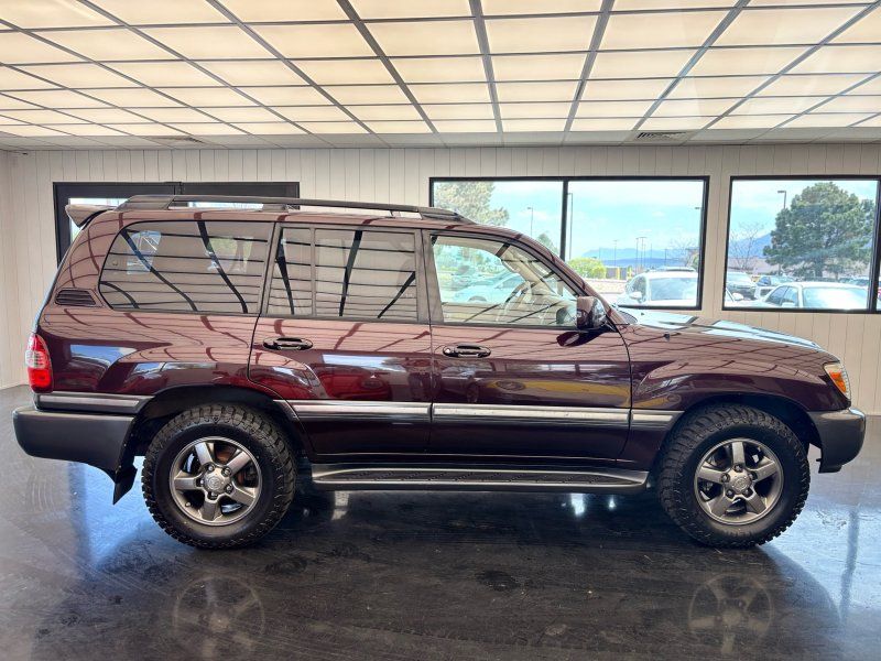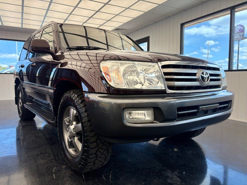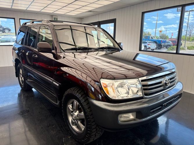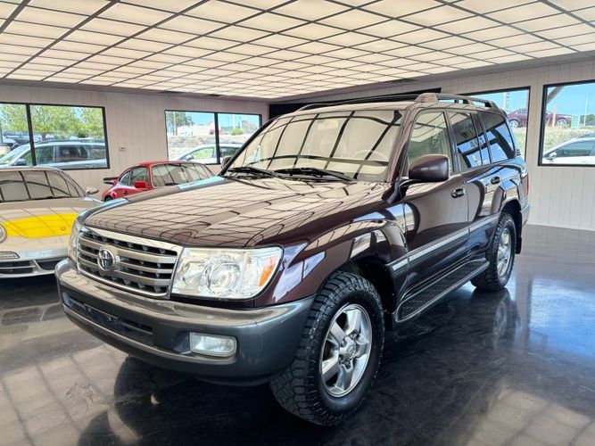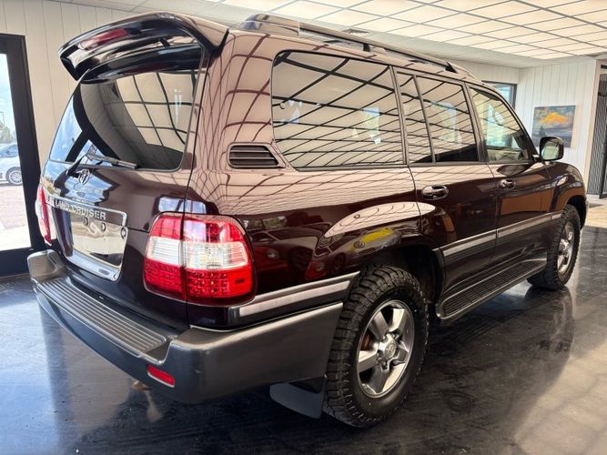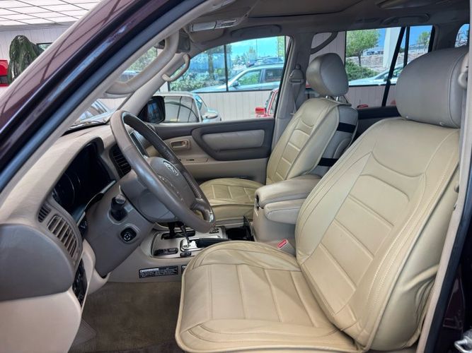 Experience the perfect blend of luxury and rugged capability with this 2006 Toyota Land Cruiser V8, finished in a striking Black Garnet Pearl. Powered by the famously dependable 2UZ-FE 4.7L V8 engine, this SUV is still considered low mileage at 190,567. A 4WD powerhouse with adjustable air suspension, factory installed locking center differential and brand-new tires, it's ready to conquer any terrain while offering unparalleled comfort. Features include leather heated front bucket seats, heated mirrors, power adjustable seats & steering wheel, sunroof, and foldable 3rd row seats. Stay connected and entertained with the JBL Premium Radio which features integrated navigation, back up-camera, 6 Disc CD changer, Bluetooth hands-free calling, cassette tape player and SiriusXM capability. The rear seat entertainment system is complete with DVD player, wireless headphones, and wired headphone jacks with independent volume control.